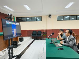 Rapat Konsultasi Publik Rancangan Peraturan Mahkamah Agung RI Tentang Perubahan Atas Peraturan Mahkamah Agung RI Nomor 1 Tahun 2019 Dan Peraturan Mahkamah Agung RI Nomor 4 Tahun 2020 melalui zoom meting yang diikuti oleh PLH. Ketua PTUN Makassar Bapak H. Bambang Wicaksono, SH.,MH, Panitera PTUN Makassar Bapak Hulul, SH. Panitera Muda Perkara PTUN Makassar Bapak Budiyono, SH,MM. Admin Ecourt PTUN Makassar Bapak Muh. Nasrullah, SE. di ruangan Media Center PTUN Makassar.