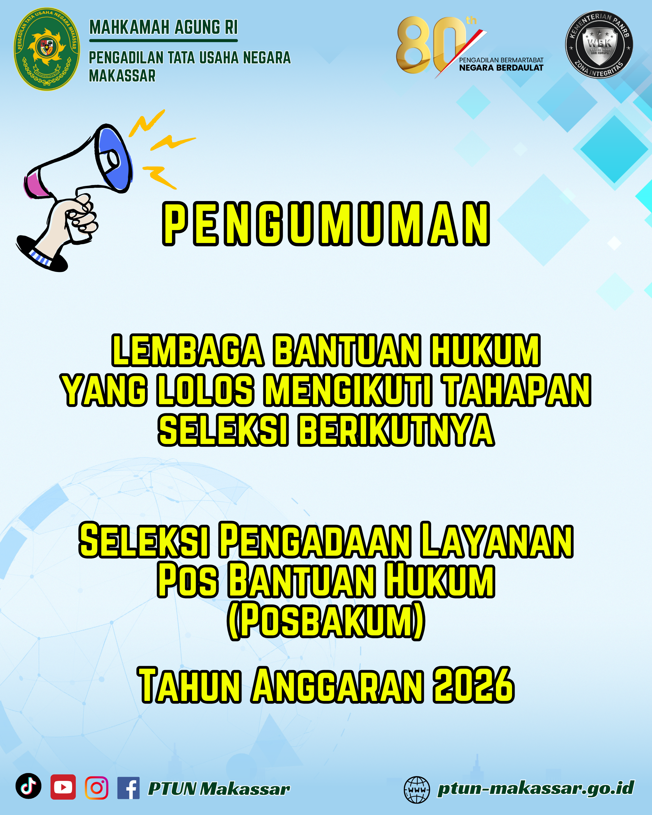 Pengumuman Seleksi Pengadaan Layanan Pos Bantuan Hukum (Posbakum) Tahun Anggaran 2026