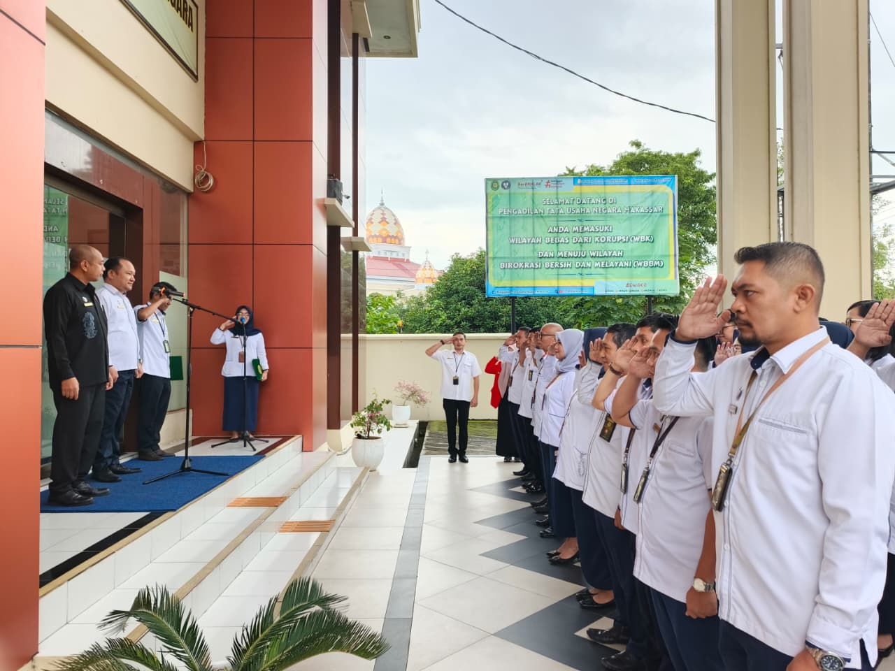 Senin, 22 Desember 2025 Bertempat dihalaman depan Gedung PTUN Makassar Seluruh aparatur Pengadilan Tata Usaha Negara (PTUN) Makassar mengikuti apel