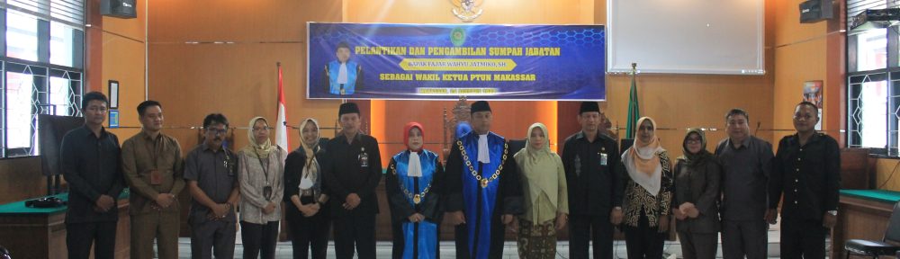 Bertempat di Ruang Sidang Utama Pengadilan Tata Usaha Negara Makassar Yang Mulia Ketua Pengadilan Tata Usaha Negara Makassar Ibu Indah Tri Haryanti, SH.,M.Hum melaksanakan pengambilan sumpah dan melantik Bapak Fajar Wahyu Jatmiko, S.H., sebagai Wakil Ketua Pengadilan Tata Usaha Negara Makassar. Acara tersebut dihadiri oleh Hakim Tinggi Pengadilan Tinggi Tata Usaha Negara Makassar.