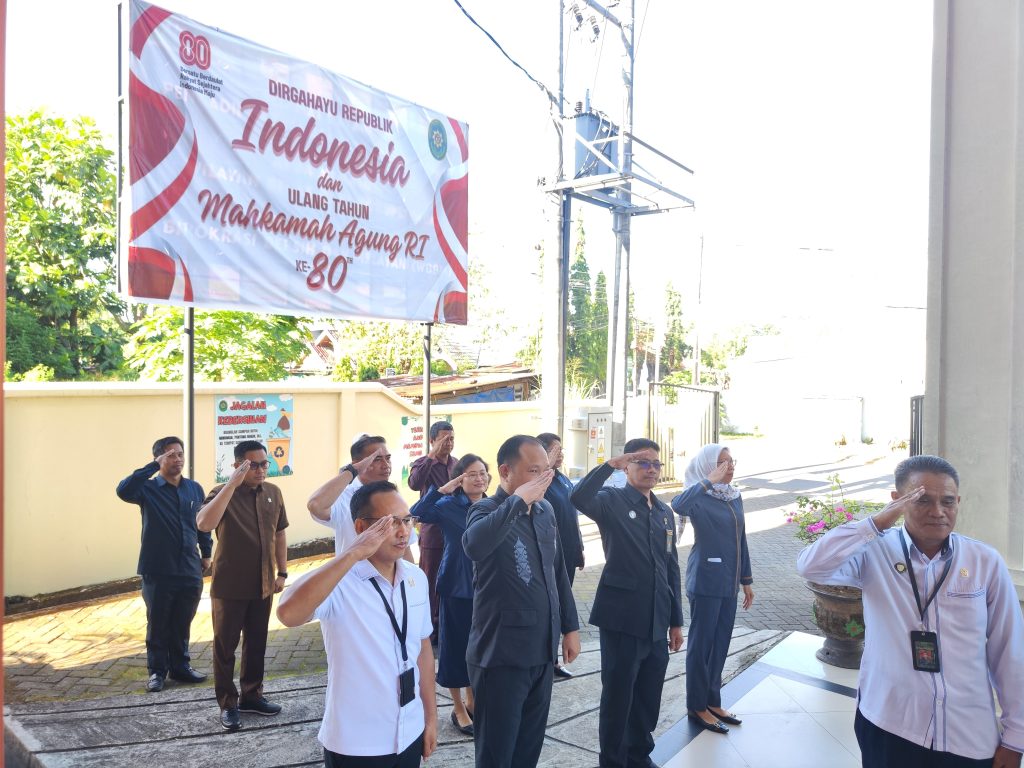 Ketua PTUN Makassar Bapak Fajar Wahyu Jatmiko, S.H., menjadi pembina pada apel pagi hari ini, dalam amanatnya beliau mengingatkan untuk disiplin bekerja termasuk dalam hal berpakaian. Pada apel ini, Ketua PTUN Makassar meminta kepada seluruh pegawai untuk menyebutkan 8 (delapan) nilai utama Mahkamah Agung yang dipimpin oleh Hakim Ibu Mariana Ivan Junias, S.H., M.Hum. Delapan nilai utama Mahkamah Agung bertujuan sebagai pedoman bagi aparatur peradilan dalam menjalankan tugas dan fungsinya, serta untuk meningkatkan profesionalitas dan integritas dalam memberikan pelayanan kepada masyarakat.