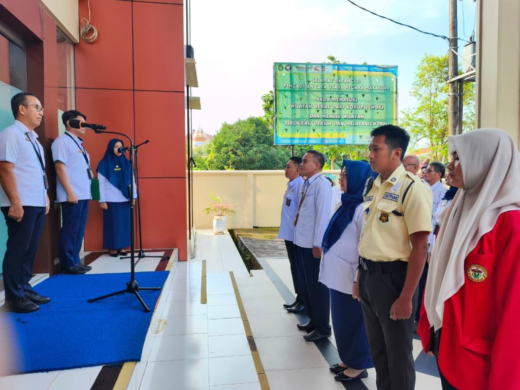 Bertempat dihalaman gedung kantor Pengadilan Tata Usaha Negara Makassar Seluruh aparatur PTUN Makassar mengikuti Apel Pagi dengan Pembina apel adalah Wakil Ketua Pengadilan Tata Usaha Negara Makassar Bapak Muhamad Ilham, S.H.,M.H.