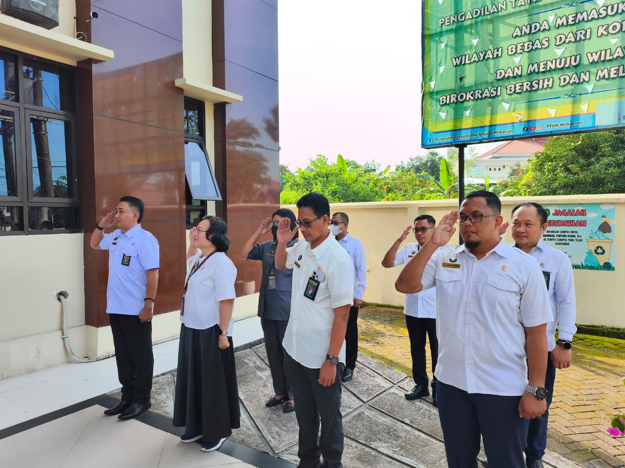 Bertempat dihalaman gedung kantor Pengadilan Tata Usaha Negara Makassar Seluruh aparatur PTUN Makassar mengikuti Apel Pagi dengan Pembina apel adalah Wakil Ketua Pengadilan Tata Usaha Negara Makassar Bapak Muhamad Ilham, S.H.,M.H.