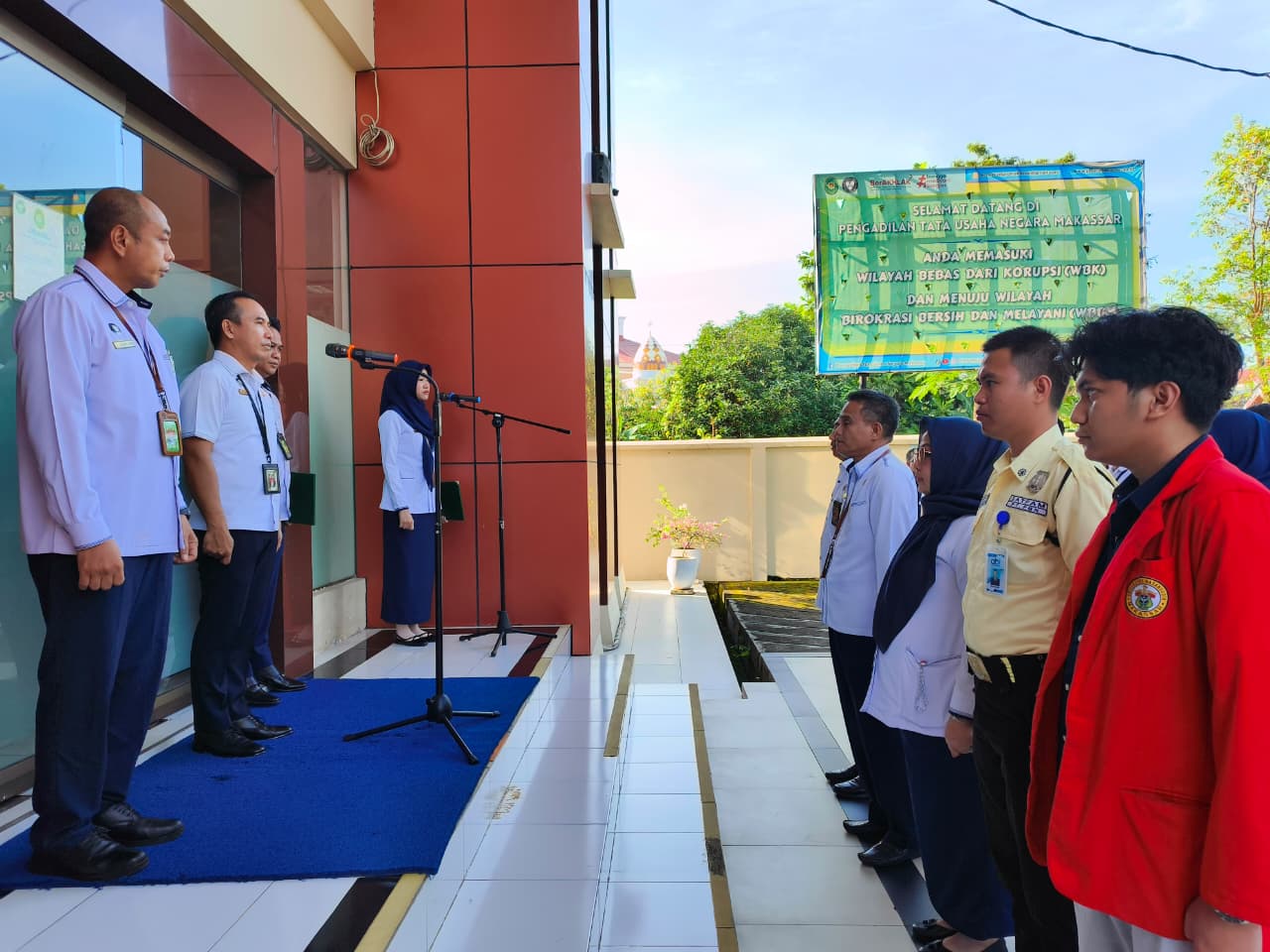 Bertempat dihalaman gedung kantor PTUN Makassar Seluruh aparatur PTUN Makassar mengikuti Apel Pagi dengan Pembina apel adalah Wakil Ketua PTUN Makassar Bapak Muhamad Ilham, S.H.,M.H. Sebelum menyampaikan amanat, Perkenalan anggota keluarga baru di lingkungan PTUN Makassar, Bapak Rachman Hakim Budi Sulistyo, S.H., M.Kn. Beliau sebelumnya bertugas di PTUN Semarang.