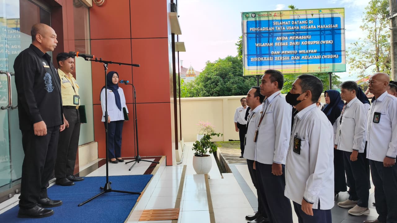 Bertempat dihalaman depan Gedung PTUN Makassar Seluruh aparatur Pengadilan Tata Usaha Negara (PTUN) Makassar mengikuti apel Pagi yang dipimpin oleh Ketua PTUN Makassar, Bapak Fajar Wahyu Jatmiko, S.H. Sebelum amanat Pembacaan do’a sebagai permohonan kepada TYME agar diberi kesehatan dan kelancaran dalam merampungkan rutinitas tugas dalam minggu ini.