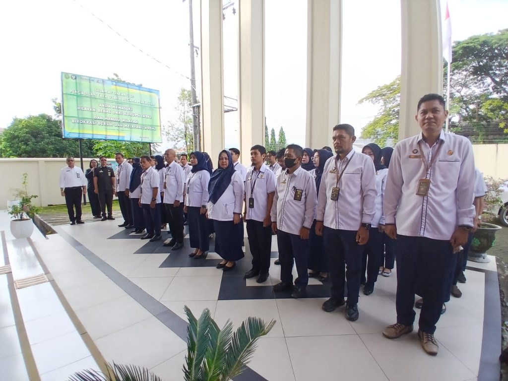 Di penghujung Apel Pagi, Wakil Ketua PTUN Makassar memandu seluruh aparatur PTUN Makassar untuk mengumandangkan yel-yel PTUN Makassar EWAKO menjadi penutup kegiatan apel pagi.