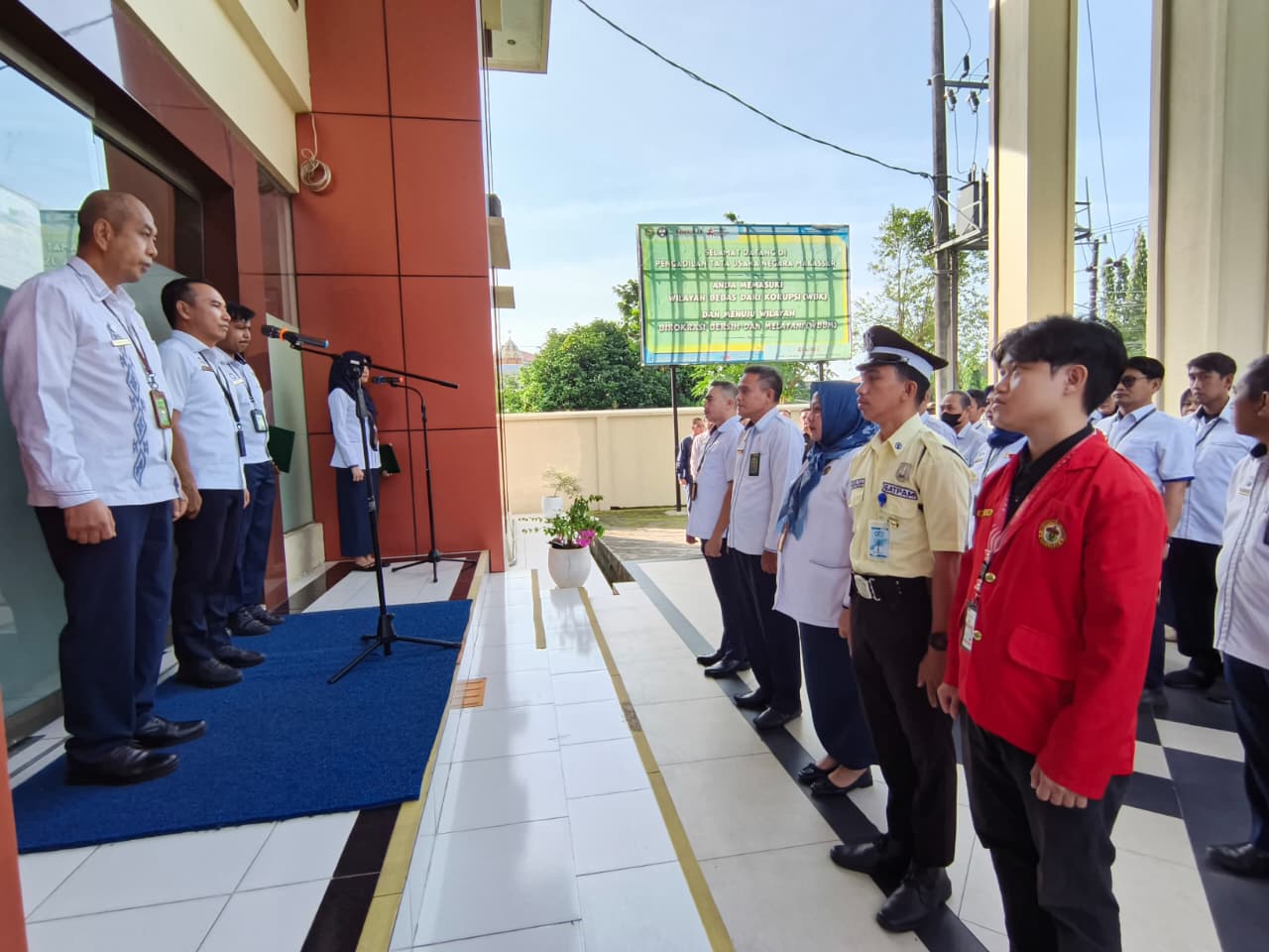 Bertempat dihalaman depan Gedung PTUN Makassar Seluruh aparatur Pengadilan Tata Usaha Negara (PTUN) Makassar mengikuti apel Pagi yang dipimpin oleh Wakil Ketua PTUN Makassar, Bapak Muhamad Ilham, S.H.,M.H. Sebelum amanat Pembacaan do’a sebagai permohonan kepada TYME agar diberi kesehatan dan kelancaran dalam merampungkan rutinitas tugas dalam minggu ini.