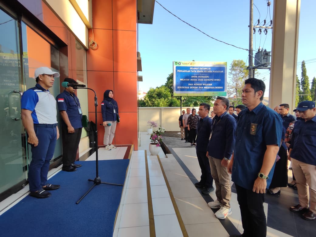 Apel Sore seluruh pegawai Pengadilan Tata Usaha Negara Makassar dengan Pemimpin apel adalah Wakil Ketua Pengadilan Tata Usaha Negara Makassar Bapak Muhamad Ilham, S.H., M.H. Pelaksanaan apel sebagai bagian dari pembinaan kedisiplinan serta menumbuhkan semangat kebersamaan dan tanggung jawab dalam bekerja. Dalam Arahan Pemimpin Apel Agar Selalu Mengevaluasi kinerja Pekerjaan serta memperkuat komitmen dan Menjaga kedisiplinan pegawai.