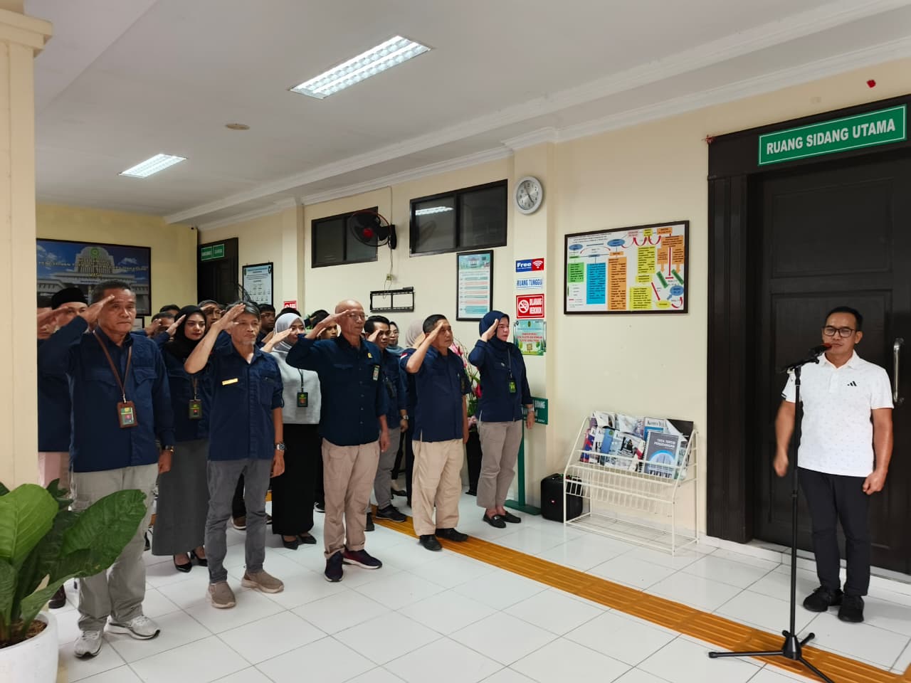 Bertempat dihalaman gedung kantor Pengadilan Tata Usaha Negara Makassar Seluruh aparatur PTUN Makassar mengikuti Apel Sore dengan Pembina apel adalah Wakil Ketua Pengadilan Tata Usaha Negara Makassar Bapak Muhamad Ilham, S.H., M.H. Pelaksanaan apel sebagai bagian dari pembinaan kedisiplinan serta menumbuhkan semangat kebersamaan dan tanggung jawab dalam bekerja.
