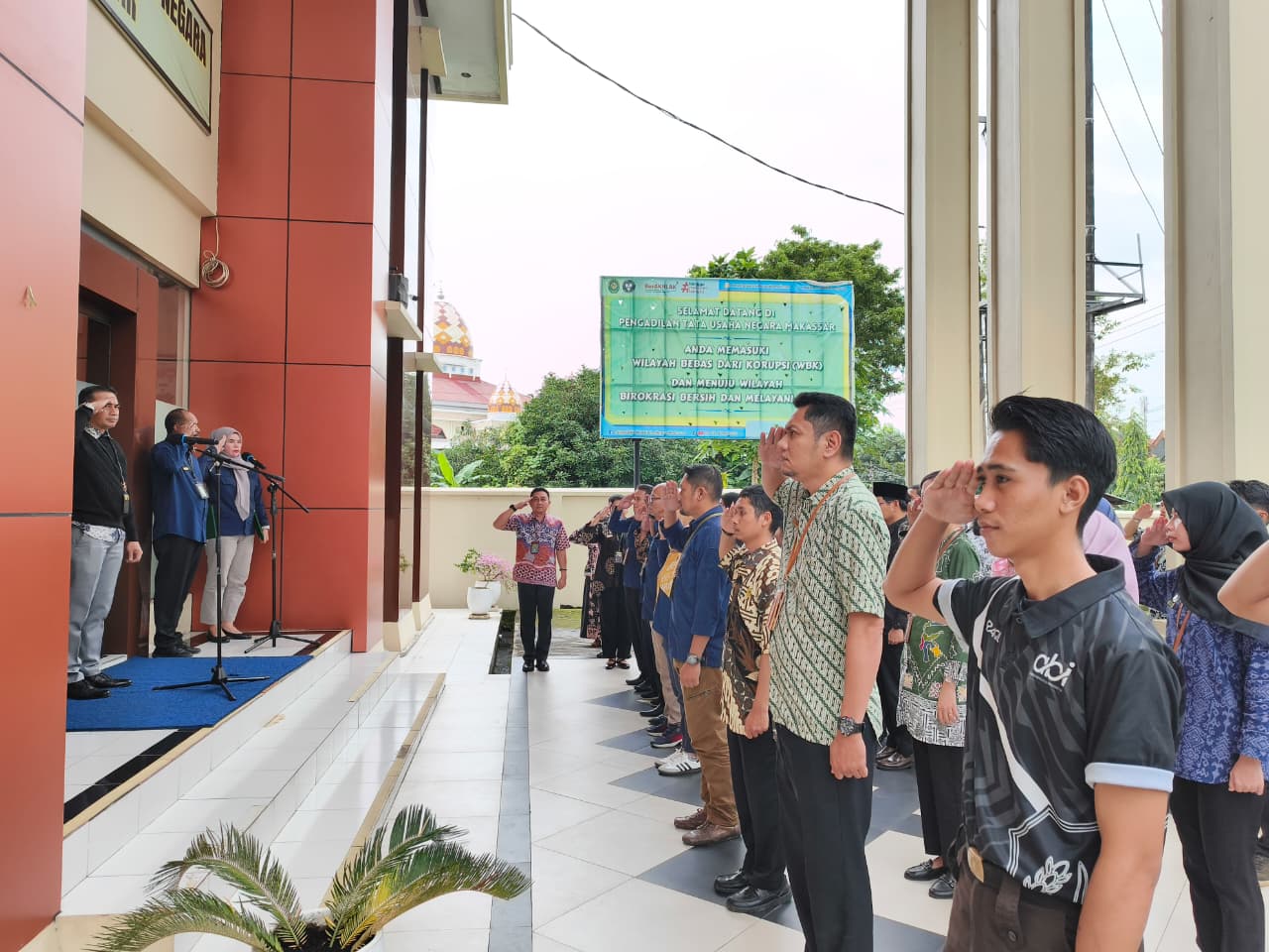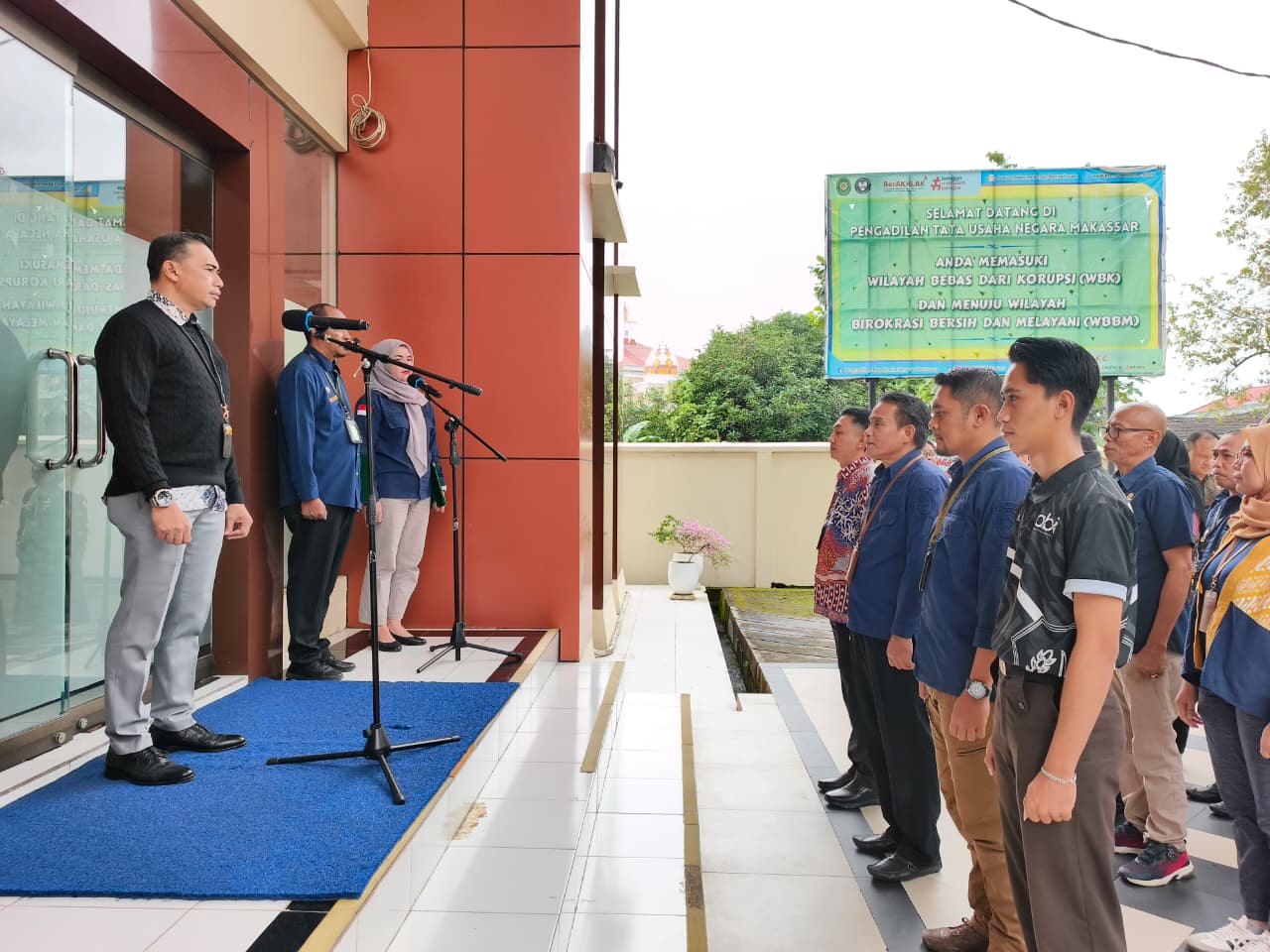 Bertempat dihalaman gedung kantor Pengadilan Tata Usaha Negara Makassar Seluruh aparatur PTUN Makassar mengikuti Apel Sore dengan Pembina apel adalah Wakil Ketua Pengadilan Tata Usaha Negara Makassar Bapak Dr. Andi Muh. Ali Rahman, S.H.,M.H.