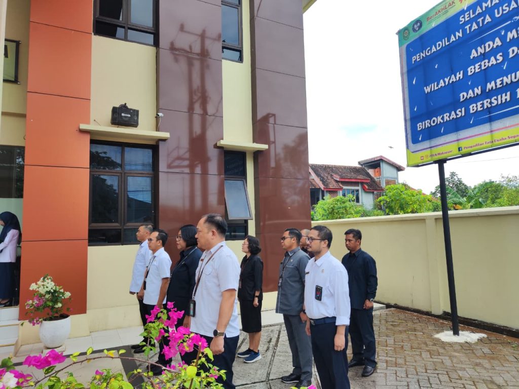 Senin, 15 September 2025. Bertempat dihalaman depan Gedung PTUN Makassar. Seluruh aparatur Pengadilan Tata Usaha Negara (PTUN) Makassar mengikuti apel sore yang dipimpin oleh Ketua PTUN Makassar, Fajar Wahyu Jatmiko, S.H.
