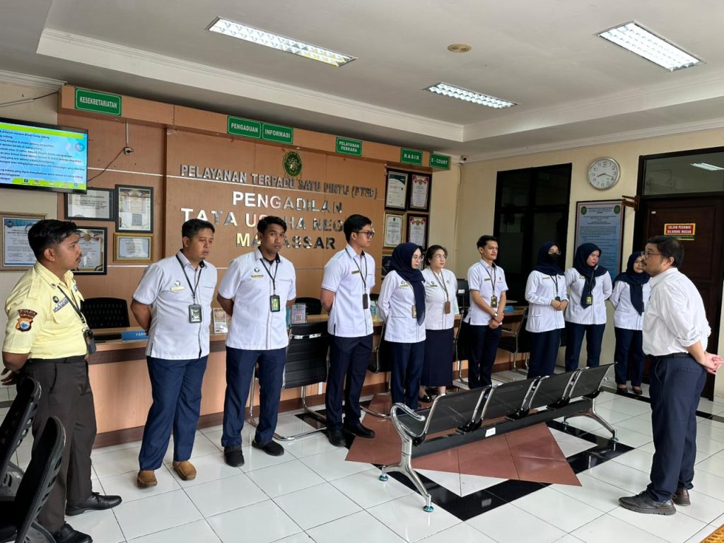 Bertempat di Ruang PTSP Pengadilan Tata Usaha Negara Makassar, pada Senin pagi tanggal 24 November 2025 Pengadilan Tata Usaha Negara Makassar melaksanakan kegiatan briefing pagi. Kegiatan briefing pagi ini diikuti oleh seluruh petugas pelayanan yaitu petugas PTSP PTUN Makassar.