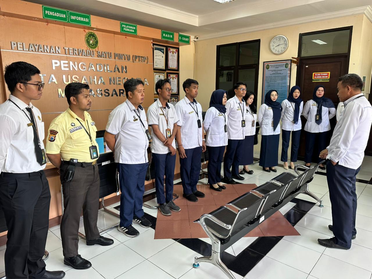 Bertempat di Ruang PTSP Pengadilan Tata Usaha Negara Makassar, dilaksankan kegiatan rutin briefing pagi, Kegiatan briefing pagi ini diikuti oleh seluruh petugas pelayanan PTSP PTUN Makassar.