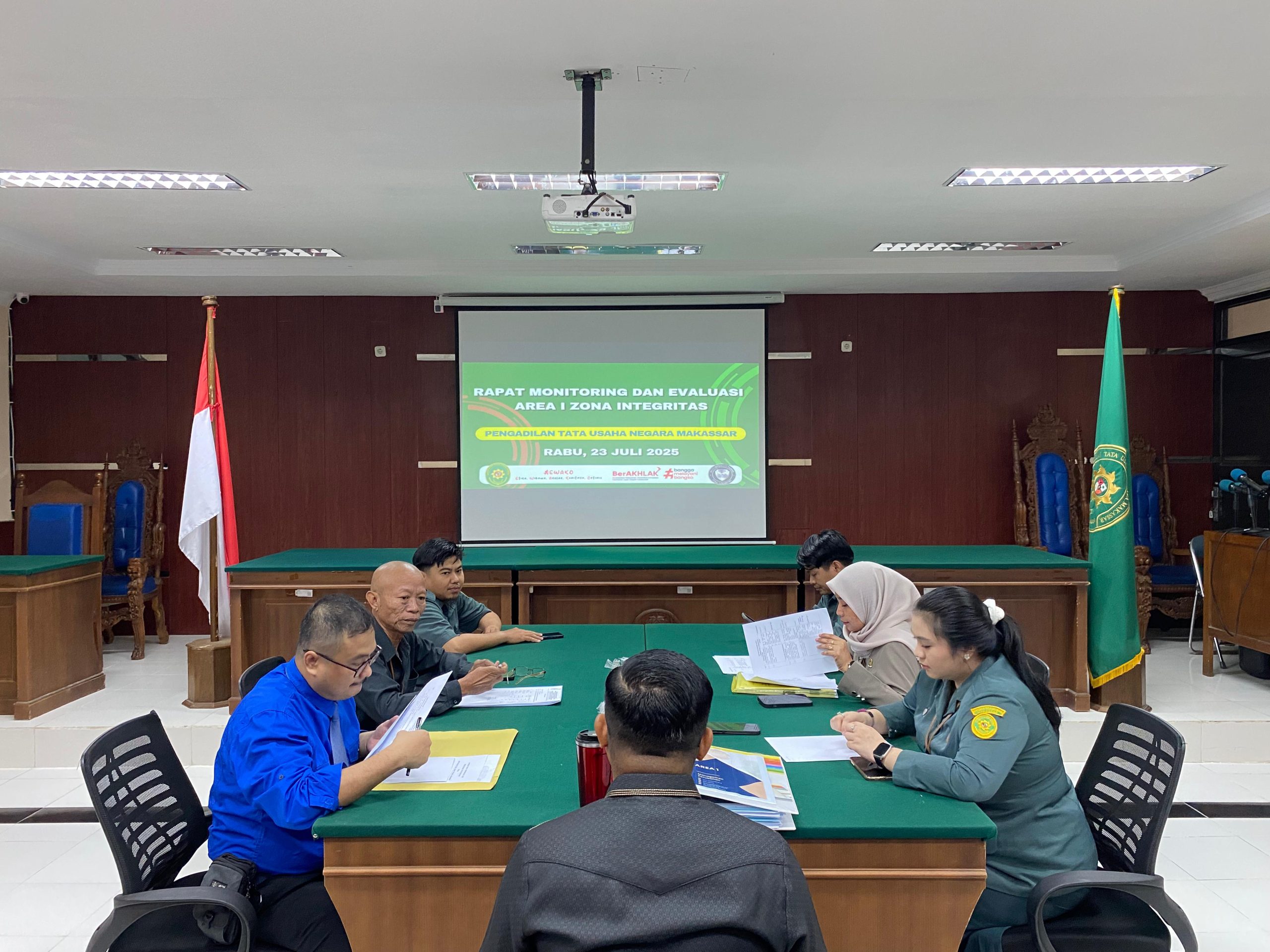 Rabu, 23 Juli 2025 Rapat Monitoring dan Evaluasi Area I Zona Integritas PTUN Makassar Menuju Wilayah Birokrasi Bersih dan Melayani membahas mengenai data dukung yang telah dilakukan serta rencana kegi...