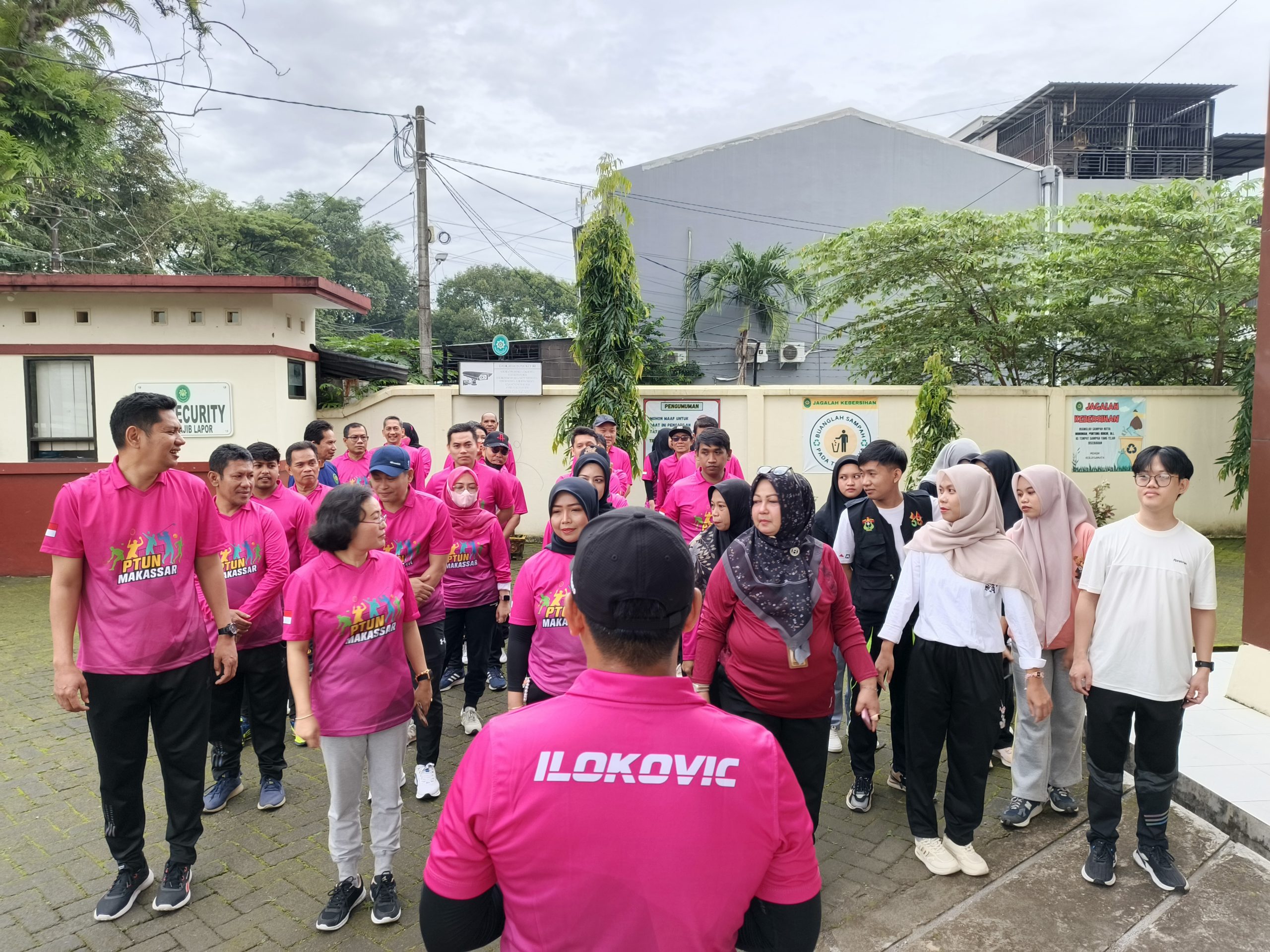 Pengadilan Tata Usaha Negara (PTUN) Makassar melaksanakan kegiatan jalan santai yang berlangsung di Jalan Raya Telkomas, diikuti oleh seluruh aparatur