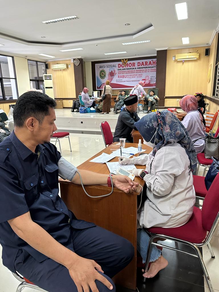 Kegiatan Donor Darah yang dilaksanakan di Pengadilan Tinggi Makassar dalam Rangka Memeriahkan HUT Republik Indonesia ke 78 dan HUT Mahkamah Agung RI ke 78
