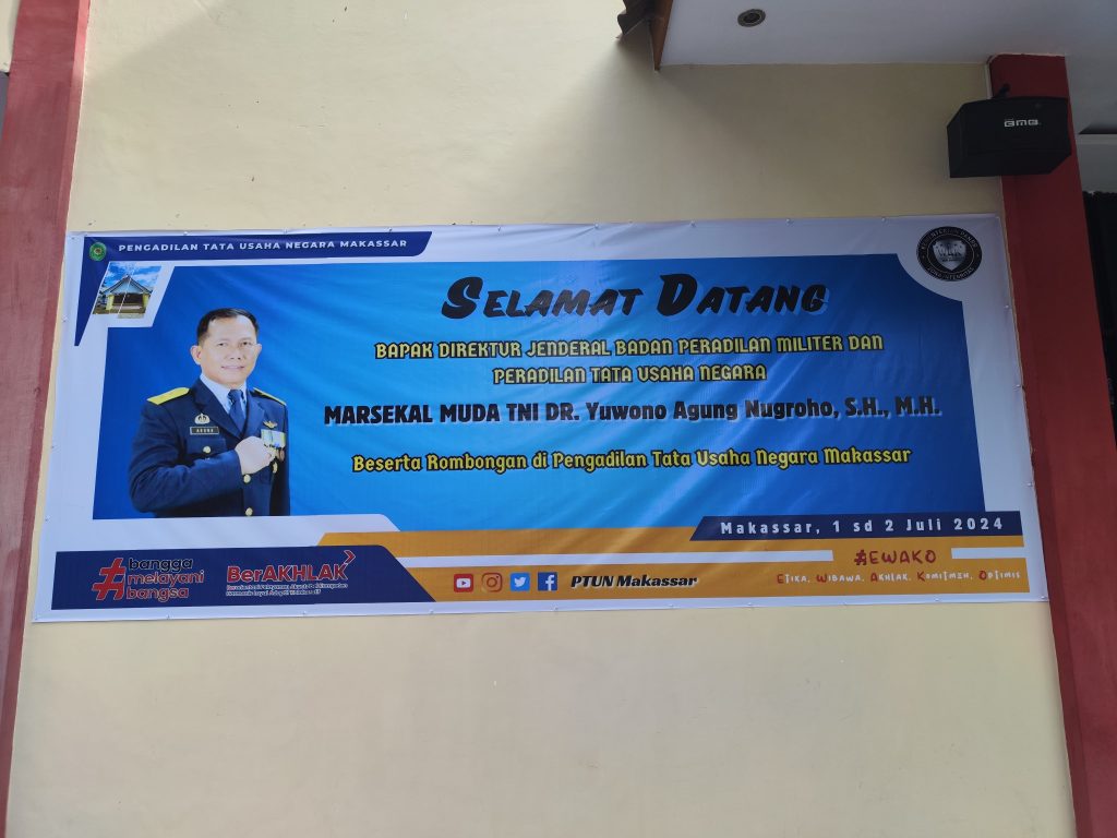 Kunjungan Direktur Jenderal Badan Peradilan Militer dan Peradilan Tata Usaha Negara Bapak Marsda TNI Dr. Yuwono Agung Nugroho, S.H., M.H., beserta rombongan ke Pengadilan Tata Usaha Negara Makassar. Dalam kesempatan ini Bapak Dirjen Badilmiltun memberikan masukan dan dukungan dalam rencana pembangunan Gedung Kantor PTUN Makassar sekaligus menyampaikan Pembinaan mengenai membangun integritas bagi Aparatur Sipil Negara di Lingkungan Mahkamah Agung.