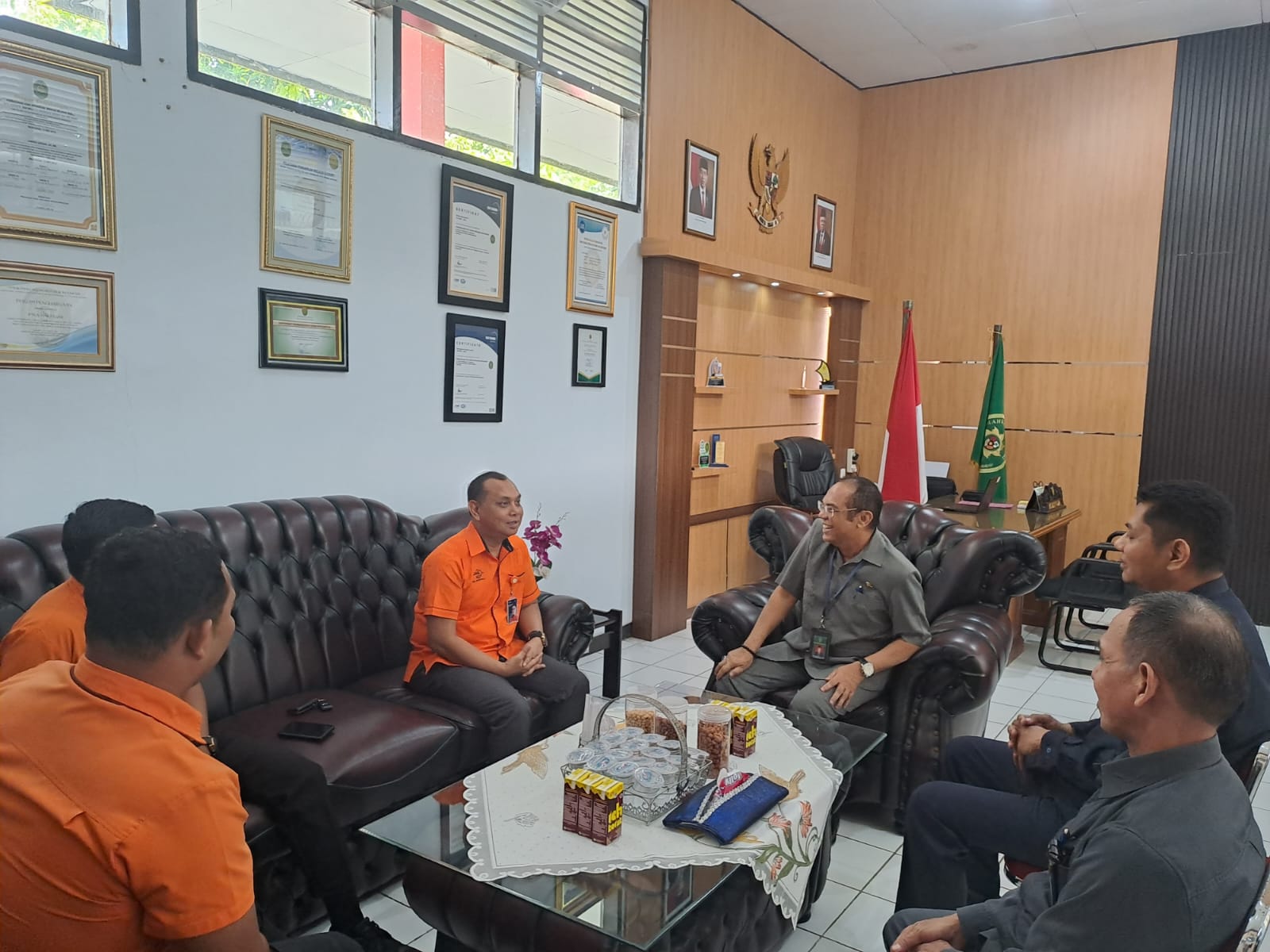 Kunjungan silaturahmi dari PT Pos Indonesia (Persero) Cabang Makassar di Pengadilan Tata Usaha Negara Makassar disambut oleh Ketua Pengadilan Tata Usaha Negara Makassar Bapak H. Tedy Romyadi, SH.,MH di ruang kerja ketua Pengadilan Tata Usaha Negara Makassar.
