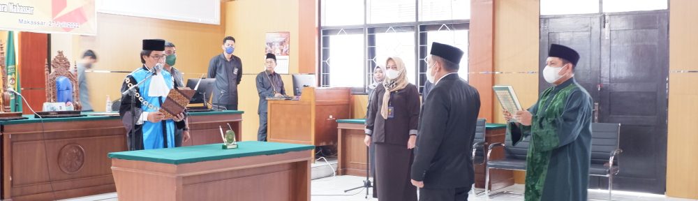Pelantikan dan Pengambilan Sumpah Jabatan Bapak H. Jar’an Kadir, A.MD, S.H. Sebagai Panitera Muda Perkara PTUN Makassar Pada Hari Rabu 27 Juli di Ruang Sidang Utama PTUN Makassar dipimpin oleh Ketua PTUN Makassar Bapak I NYOMAN HARNANTA, SH.,MH. dan Sebagai Saksi Sekretaris PTUN Makassar Ibunda SRI MULIATI, S.Sos., MH. dan Panitera Bapak Hulul, SH.,MH.” Beserta Rohaniawan.