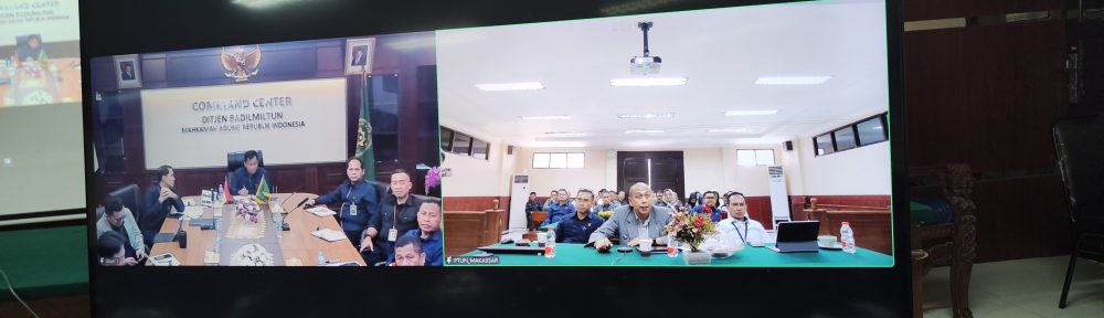 Pembinaan Dirjen Badilmiltun Secara Daring diikuti oleh Seluruh Pegawai PTUN Makassar di Ruang Sidang Cakra PTUN Makassar. Dalam Kesempatan kali ini, Ketua PTUN Makassar Bapak Fajar Wahyu Jatmiko, S.H., meminta petunjuk sekaligus berkoordinasi terkait permasalahan yang dialami PTUN Makassar.