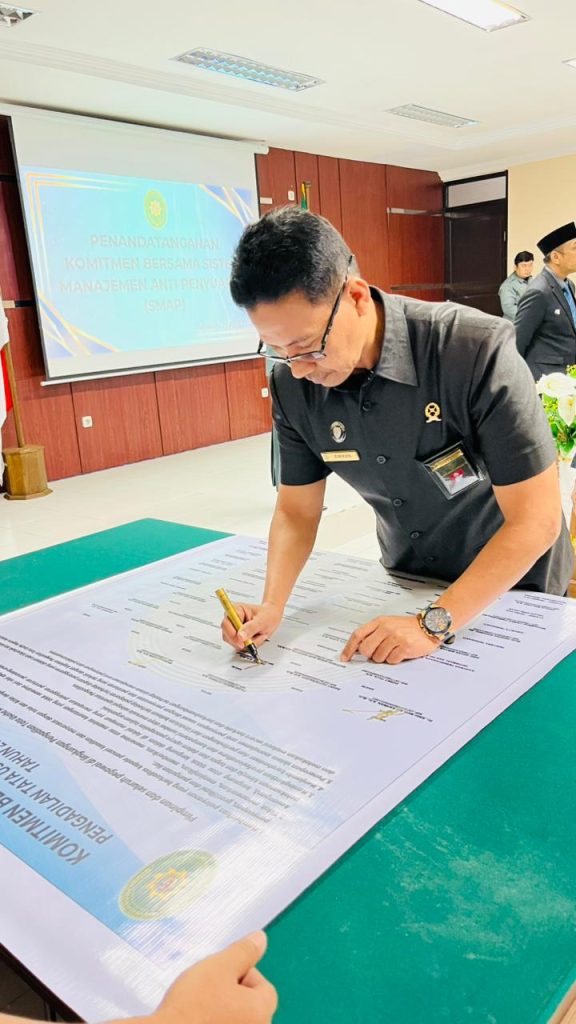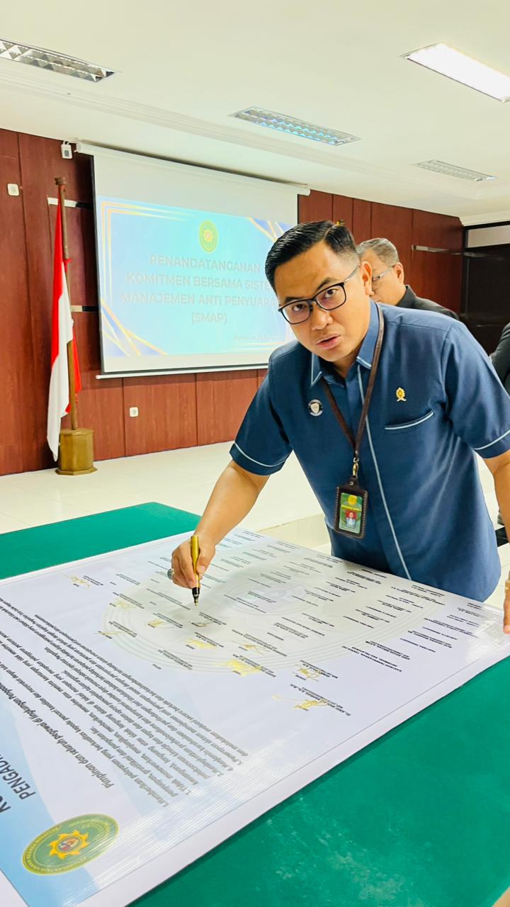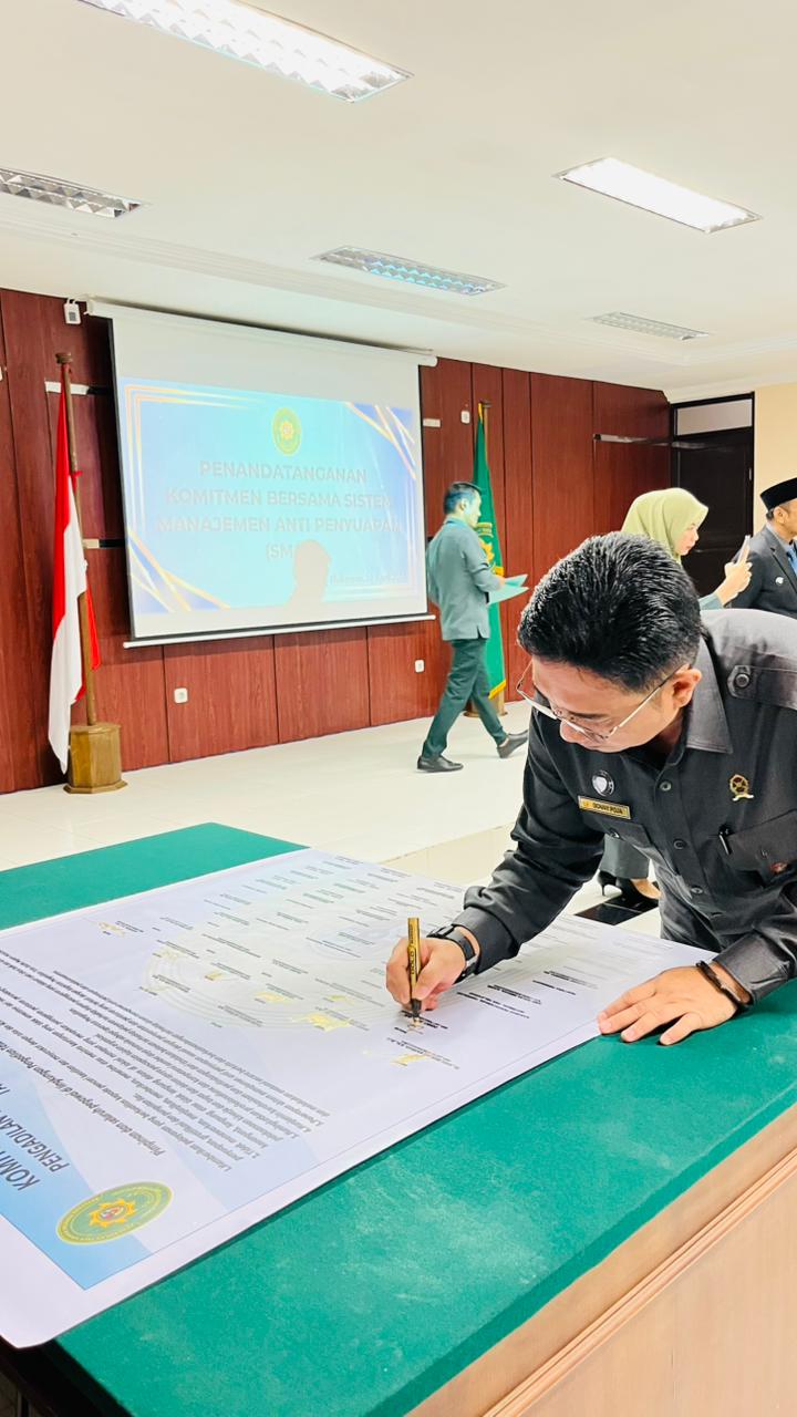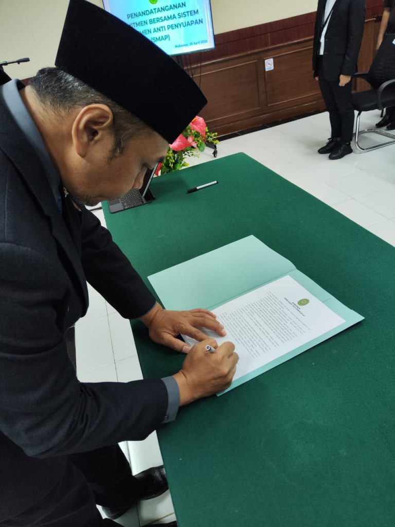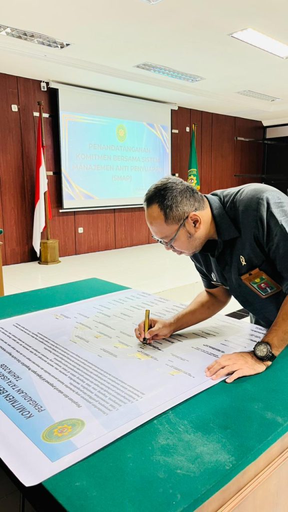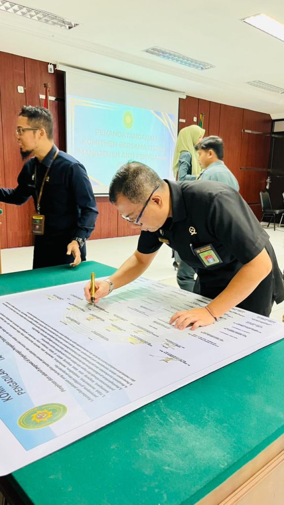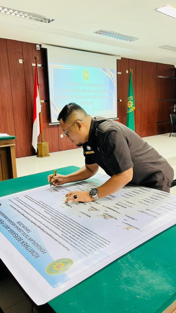 Makassar – Pengadilan Tata Usaha Negara Makassar melaksanakan kegiatan Penandatanganan Komitmen Bersama Sistem Manajemen Anti Penyuapan (SMAP) sebagai wujud nyata komitmen seluruh aparatur dalam membangun budaya kerja yang berintegritas serta bebas dari praktik penyuapan.