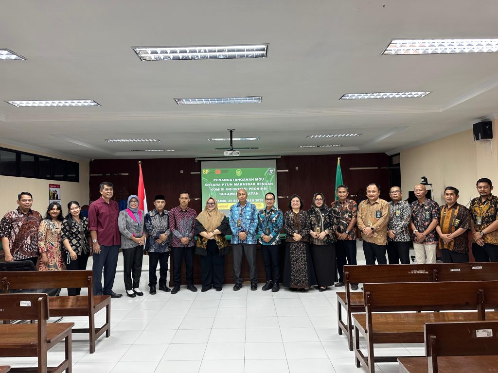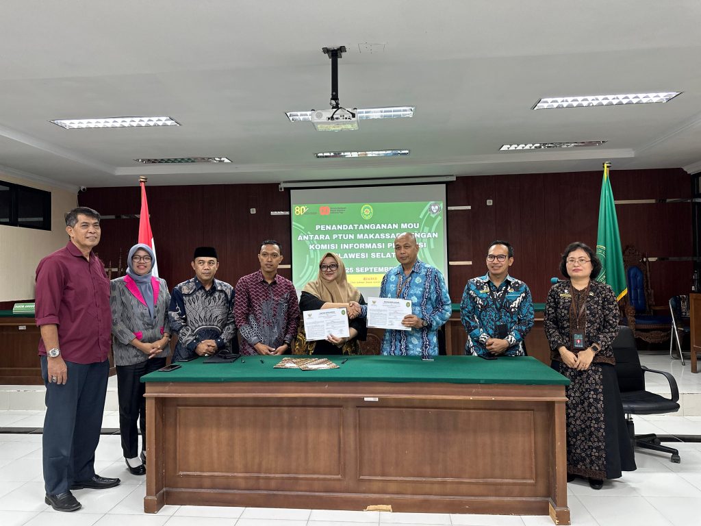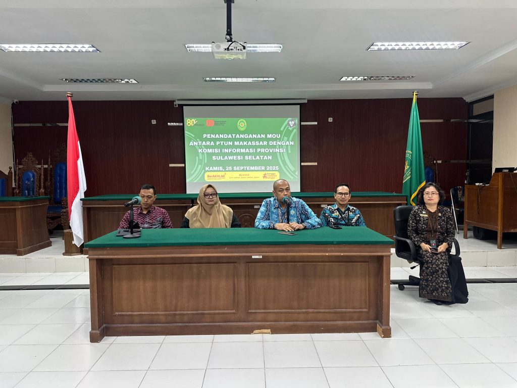 Bertempat diruang Sidang Cakra PTUN Makassar dilaksanakan Penandatanganan nota kesepakatan antara PTUN Makassar dengan Komisi Provinsi Sulawesi Selatan tentang kerjasama sosialisasi dan diseminasi keterbukaan informasi publik serta regulasi terkait penyelesaian sengketa informasi.
