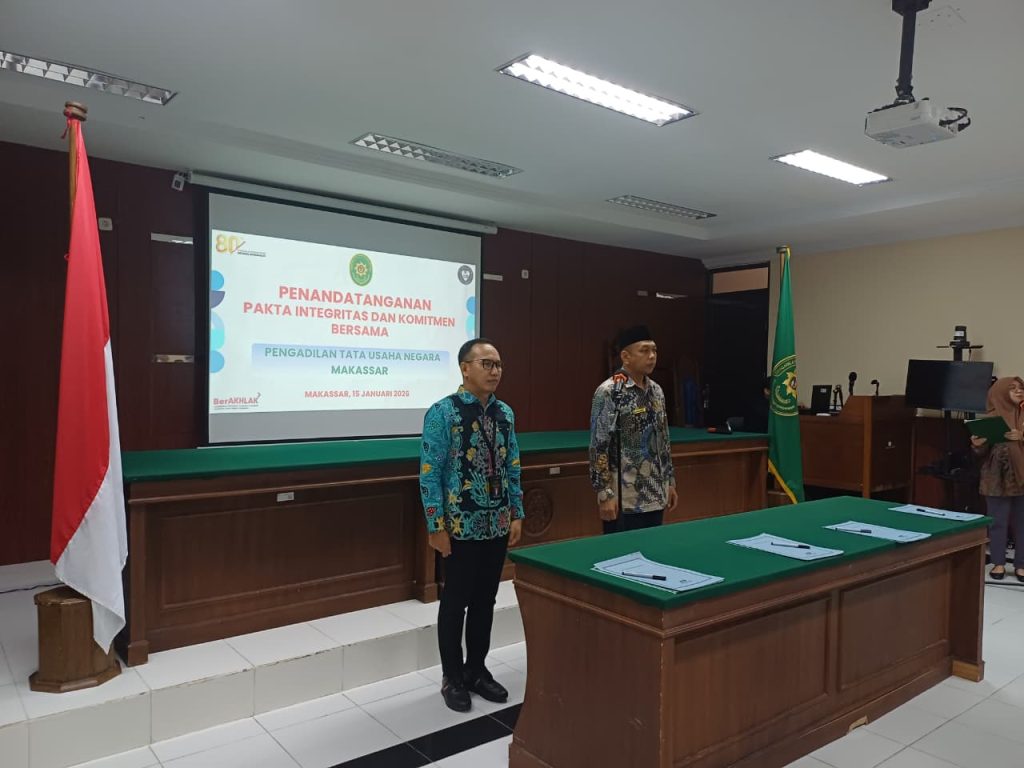 Pengadilan Tata Usaha Negara (PTUN) Makassar melaksanakan kegiatan Penandatanganan Pakta Integritas, Perjanjian Kinerja, dan Komitmen Bersama bagi hakim dan pegawai PTUN Makassar yang belum menandatangani, serta tenaga outsourcing PTUN Makassar, sebagai bentuk Keseriusan Dalam Pembangunan Zona Integritas Menuju Wilayah Birokrasi Bersih dan Melayani (WBBM).