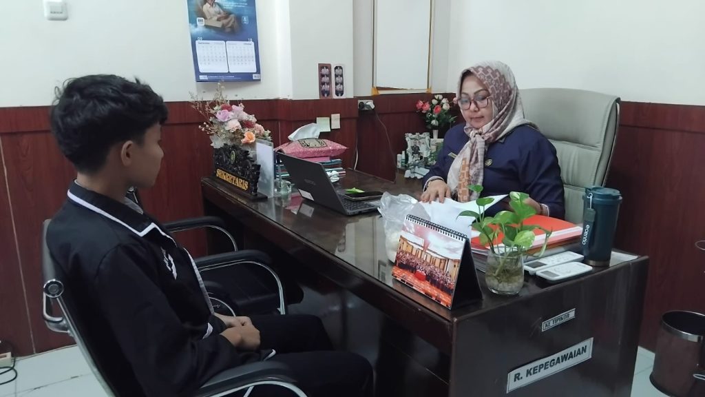 Sekretaris PTUN Makassar Ibu Sri Muliati, S.Sos.,MH. Menerima Siswa Magang SMKN 2 Jeneponto sebanyak 1 orang yang akan melaksanan kegiatan selama Bulan September sampai dengan Bulan November 2025 dengan Nama Indrha Re. Malik Kelas XII Teknik Jaringan Komputer dan Telekomunikasi