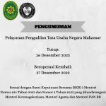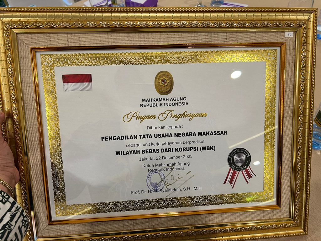 Pengadilan Tata Usaha Makassar berhasil mendapatkan Piagam Penghargaan sebagai Unit Kerja Pelayanan Berpredikat Wilayah Bebas Dari Korupsi (WBK) dalam kegiatan Penyerahan dan Penganugerahan Piagam Penghargaan Bagi Unit Kerja Berprestasi di Lingkungan Mahkamah Agung dan Badan Peradilan di Bawahnya.