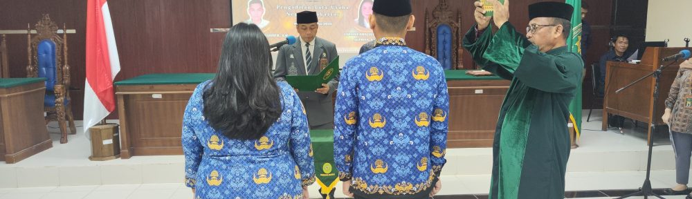 Pengambilan Sumpah Pegawai Negeri Sipil Pengadilan Tata Usaha Negara Makassar atas nama Larisha Amalia Pratiwi Supriya, S.H., dan Muhammad Aswad Ibrahim, S.H. oleh Ketua PTUN Makassar Bapak Fajar Wahyu Jatmiko, S.H.