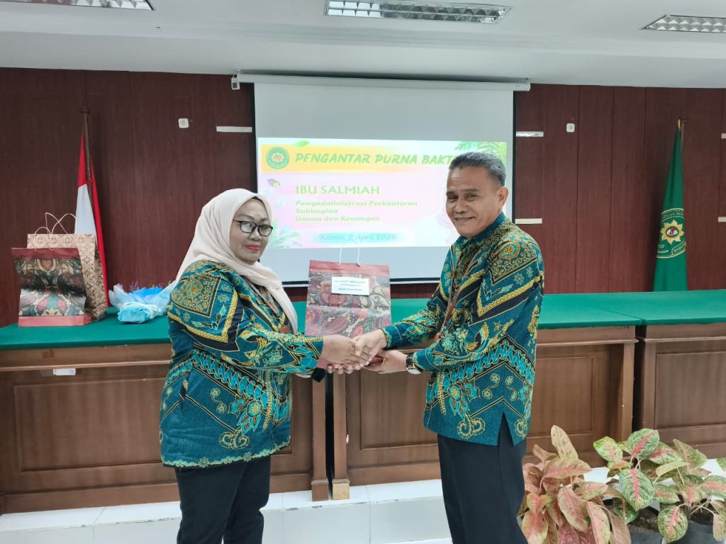 Pengadilan Tata Usaha Negara (PTUN) Makassar melaksanakan kegiatan Pengantar Purna Bakti Ibu Salmiah, Staf Subbagian Umum dan Keuangan PTUN Makassar, yang telah menyelesaikan masa pengabdiannya. Kegiatan ini dihadiri oleh pimpinan serta seluruh aparatur PTUN Makassar sebagai bentuk penghormatan dan apresiasi atas dedikasi serta loyalitas yang telah diberikan selama menjalankan tugas.