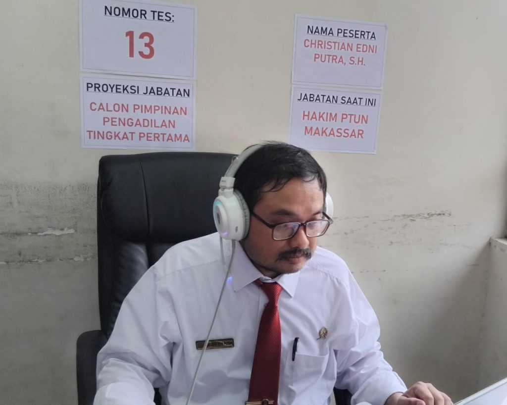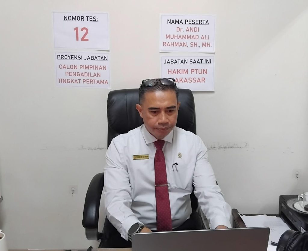 Profile Assesment dilaksanakan secara daring (online) pada Rabu, 22 Oktober 2025 jam 09.00 Wita, dengan peserta Profile Assessment Sebanyak 23 peserta. Dari PTUN Makassar diIkuti Oleh Hakim PTUN Makassar Bapak Dr. Andi Muh Ali Rahman, S.H., M.H. dan Hakim PTUN Makassar Bapak Christian Edni Putra, S.H. secara terpisah di ruangan yang berbeda.