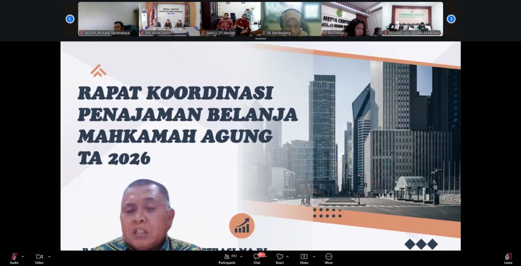 Makassar – Pengadilan Tata Usaha Negara (PTUN) Makassar mengikuti Rapat Koordinasi Pembahasan Penajaman Belanja Kementerian/Lembaga (K/L) Tahun Anggaran 2026 dan Penyelesaian Revisi Bagian Anggaran Bendahara Umum Negara (BA BUN) TA 2026 yang dilaksanakan secara daring.