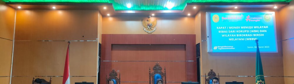 Kegiatan Monitoring Dalam Rangka mengevaluasi Kegiatan Tim Zona Integritas (ZI) menuju wilayah bebas korupsi (WBK) dan wilayah birokrasi bersih dan melayani (WBBM) bulan Maret 2023 yang bertempat diruang sidang Utama PTUN Makassar. Rapat dipimpin oleh Ketua ZI, Ibu Nur Akti, S.H., M.H dan didampingi oleh Wakil Ketua 1 Bapak H. Bambang Wicaksono, S.H., M.H serta Wakil Ketua 2 Bapak Muhammad Aly Rusmin, S.H.