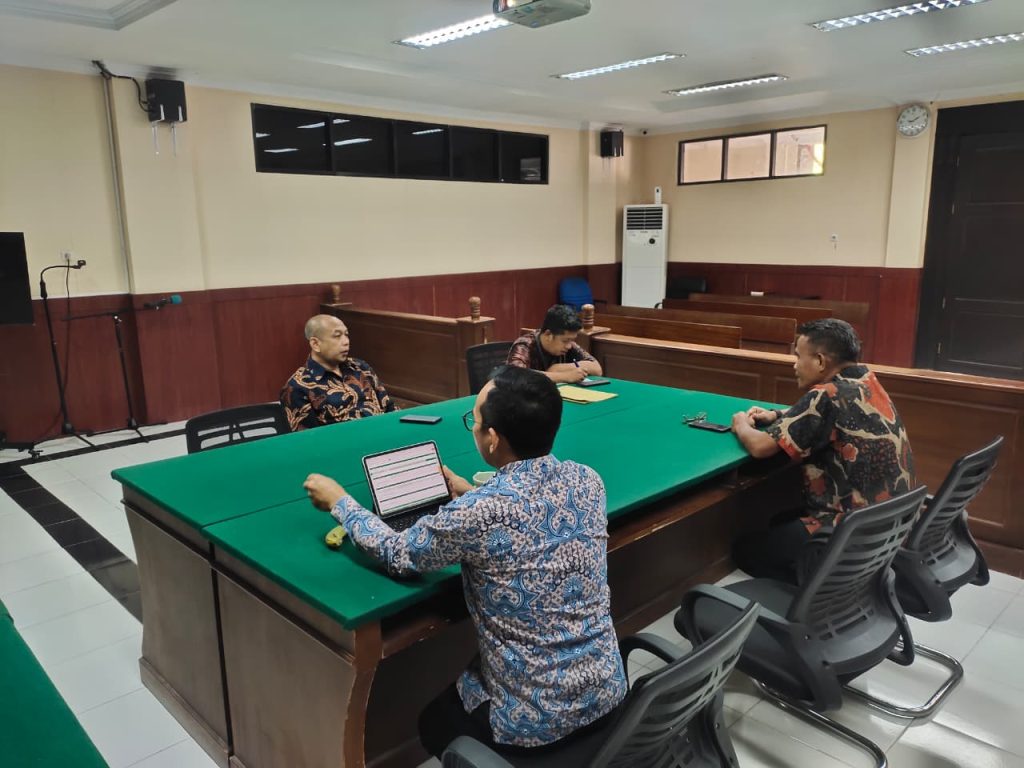 Rapat Monitoring dan Evaluasi Panitera dengan Ketua dan Wakil Ketua PTUN Makassar diruang Sidang Cakra PTUN Makassar.
