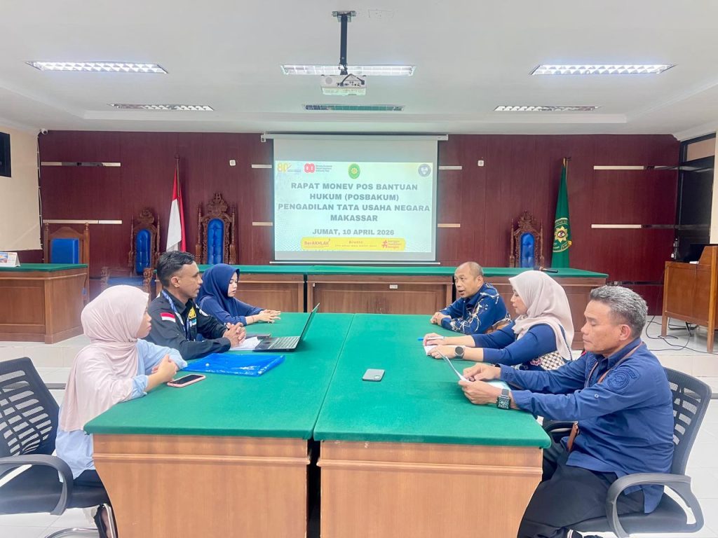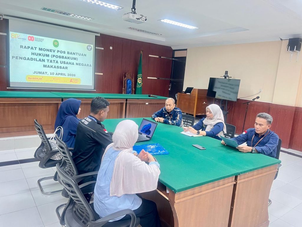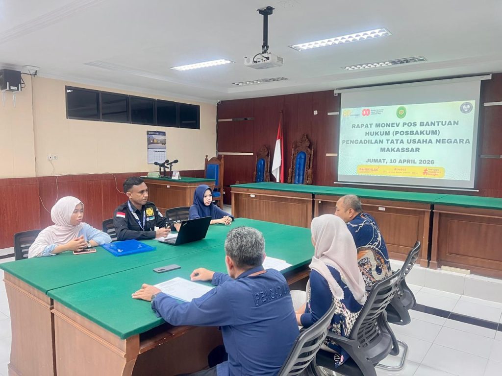 Makassar – Pengadilan Tata Usaha Negara (PTUN) Makassar melaksanakan Rapat Monitoring dan Evaluasi (Monev) Pos Bantuan Hukum (Posbakum) sebagai bagian dari upaya peningkatan kualitas layanan kepada masyarakat, khususnya bagi pencari keadilan yang kurang mampu.