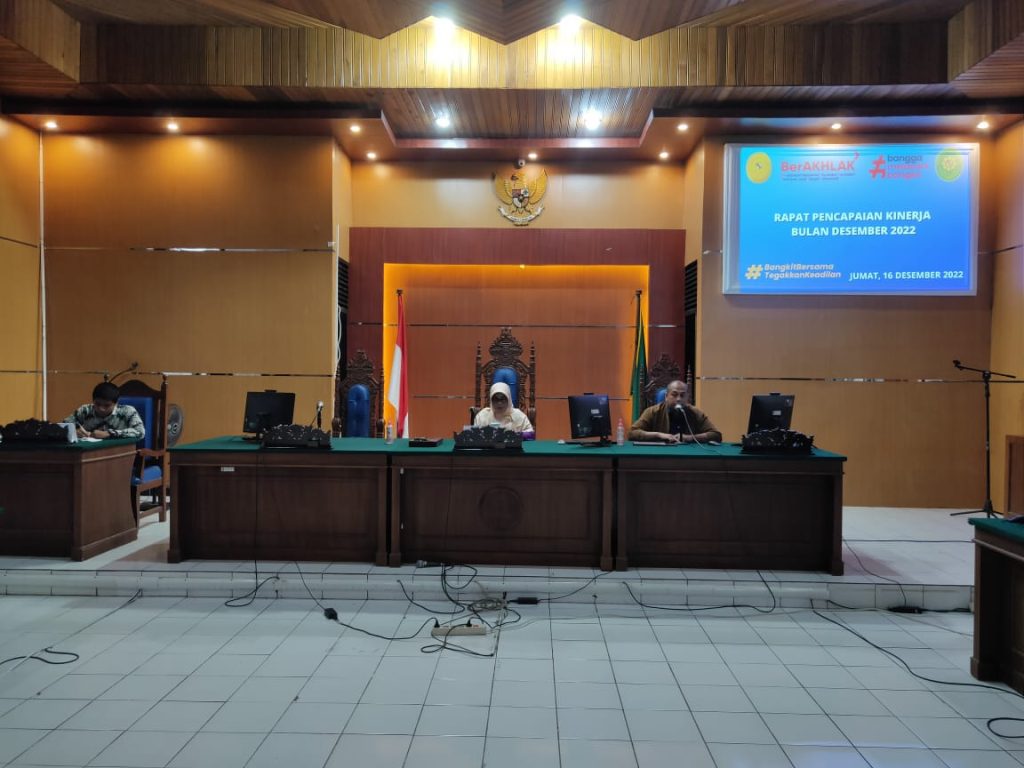 Rapat Pencapaian Kinerja Bulan Desember tahun 2022 Dipimpin Oleh Ketua PTUN Makassar yang dihadiri oleh Wakil Ketua, Para Hakim, Sekretaris, Pejabat Struktural dan Fungsional, Staff, CPNS serta PPNPN PTUN Makassar.