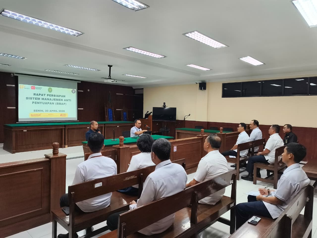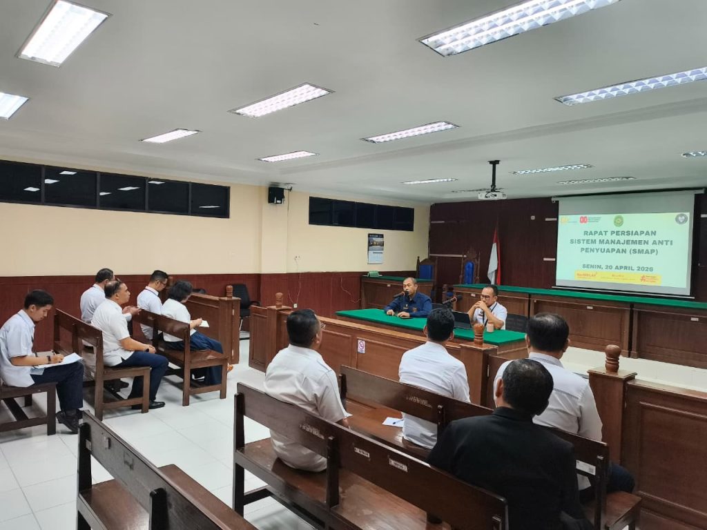 Makassar – Pengadilan Tata Usaha Negara (PTUN) Makassar melaksanakan Rapat Persiapan Sistem Manajemen Anti Penyuapan (SMAP) yang bertempat di Ruang Sidang Cakra PTUN Makassar. Rapat tersebut dipimpin oleh Ketua dan Wakil Ketua PTUN Makassar serta dihadiri oleh seluruh Hakim PTUN Makassar sebagai bagian dari upaya penguatan implementasi SMAP di lingkungan peradilan.