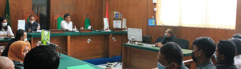 kegiatan rapat rutin Monitoring dan evaluasi bagian kepaniteraan PTUN Makassar yang dilaksanakan bulan Mei Tahun 2022 di pimpin oleh Ketua PTUN Makassar Bapak I Nyoman Harnanta, SH.,MH. di dampingi oleh Panitera PTUN Makassar Bapak Hulul, SH. yang di ikuti oleh Panmud Perkara, Panmud Hukum, Panitera Pengganti, Jurusita pengganti, staf Kepaniteraan dan CPNS PTUN Makassar yang dilaksanakan di ruang sidang II PTUN Makassar.