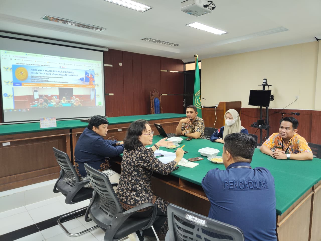Pengadilan Tata Usaha Negara (PTUN) Makassar melaksanakan Rapat Tim Satuan Tugas Teknologi Informasi dan Komunikasi (Satgas TIK) Triwulan IV di ruang sidang Cakra PTUN Makassar dipimpin oleh Wakil Ketua Tim Satgas TIK Ibu Mariana Ivan Junias, S.H.,M.Hum. dihadiri oleh Sekretaris Tim Satgas TIK Bapak Andi Adzan Mirzan, S.Kom.,M.M. dan Anggota Tim Satgas TIK PTUN Makassar.