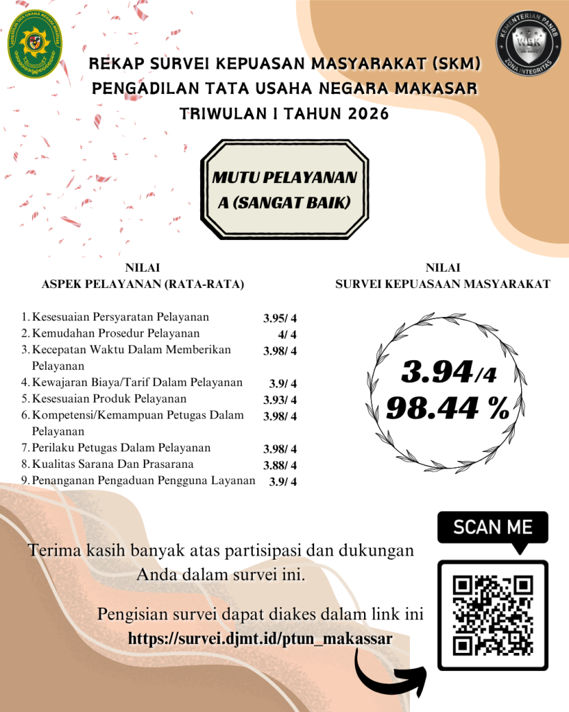 Rekap Survei Kepuasan Masyarakat (SKM) Pengadilan Tata Usaha Negara Makassar Triwulan I Tahun 2026