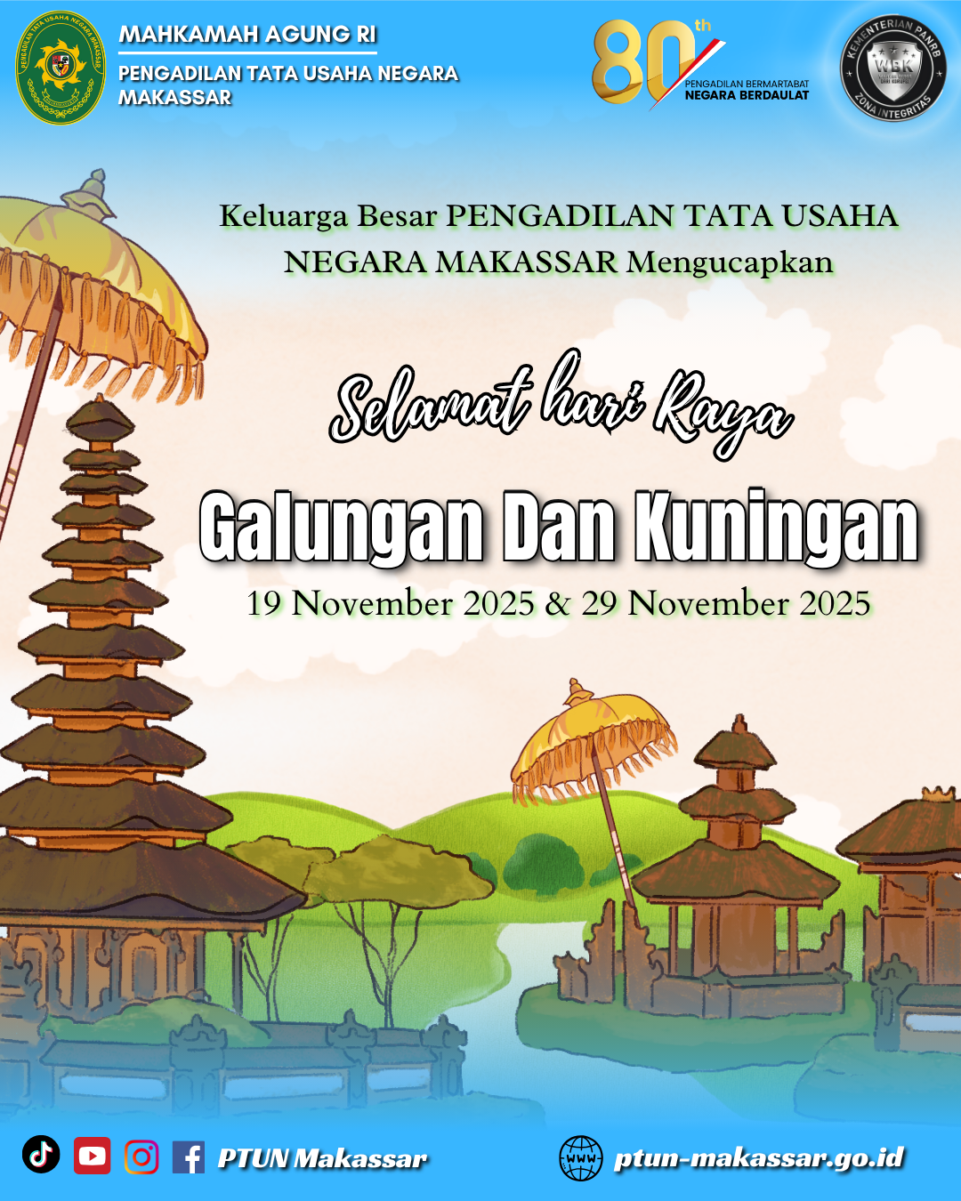 Keluarga Besar Pengadilan Tata Usaha Negara Makassar mengucapkan Selamat Hari Raya Galungan dan Kuningan 19 November 2025