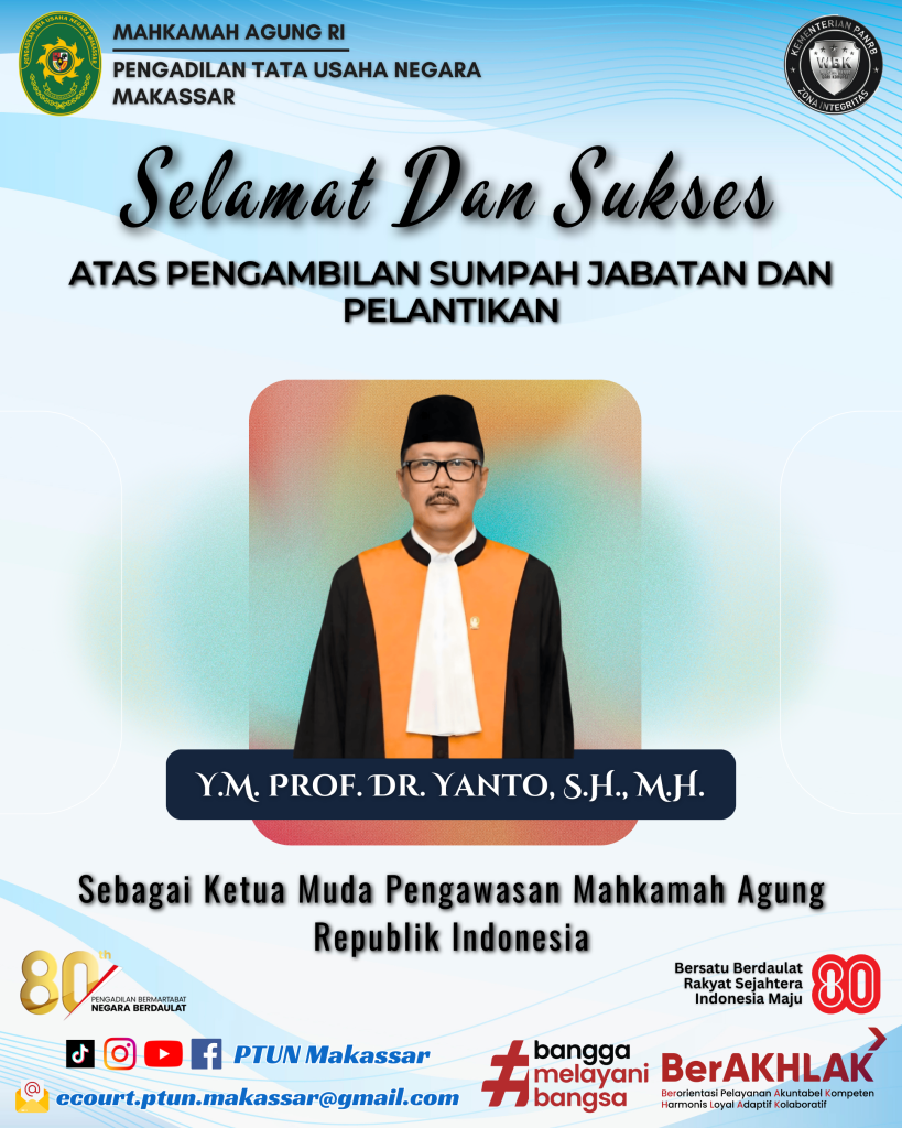 Keluarga Besar Pengadilan Tata Usaha Negara Makassar Mengucapkan: Selamat & Sukses Atas Pengambilan Sumpah Jabatan dan Pelantikan
