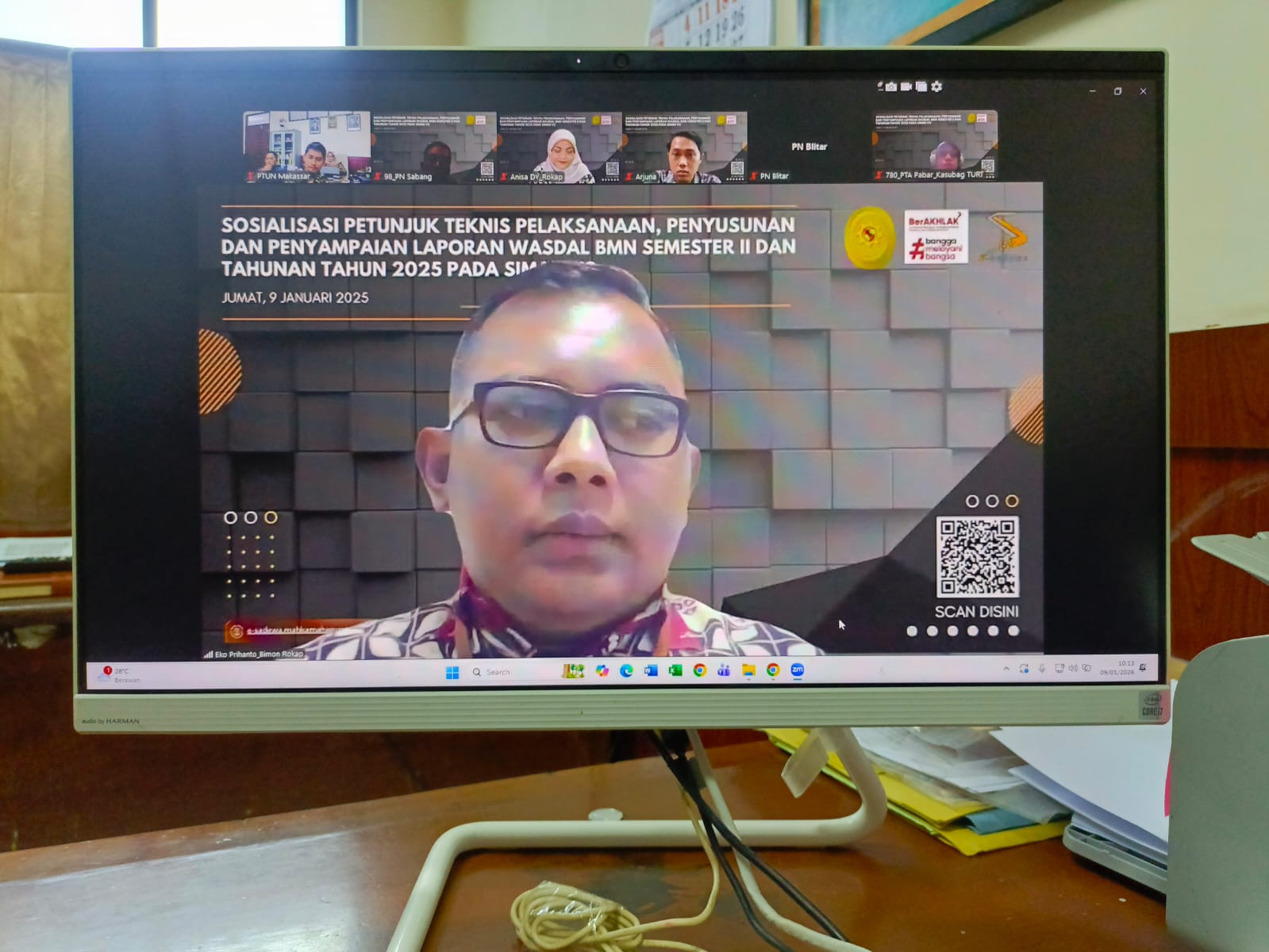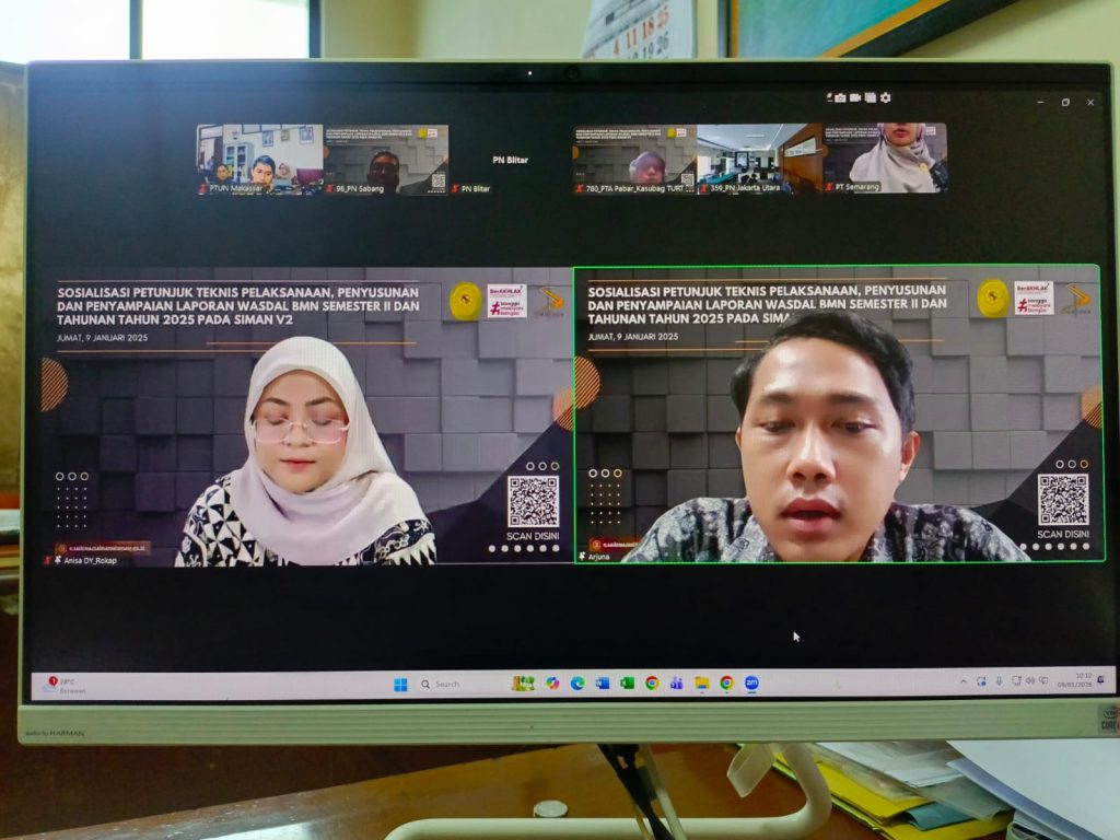 Pengadilan Tata Usaha Negara (PTUN) Makassar mengikuti kegiatan Sosialisasi Petunjuk Teknis Pelaksanaan, Penyusunan, dan Penyampaian Laporan Pengawasan dan Pengendalian Barang Milik Negara (BMN) Semester II dan Tahunan Tahun 2025 melalui aplikasi SIMAN v2 yang dilaksanakan secara daring (Zoom Meeting).