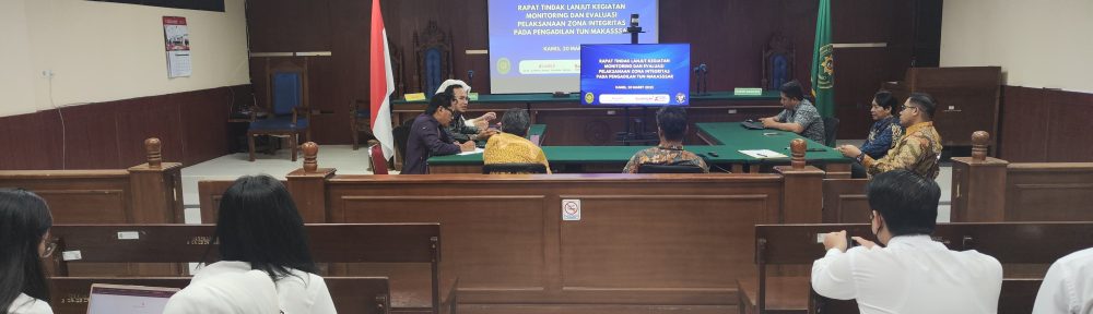 Tindak Lanjut Monitoring dan Evaluasi Pelaksanaan Zona Integritas pada Pengadilan Tata Usaha Negara Makassar. Kegiatan Rapat dipimpin oleh Wakil Ketua PTUN Makassar selaku Ketua Tim Zona Integritas dan dihadiri oleh Panitera, Koordinator Area dan Tim IT.
